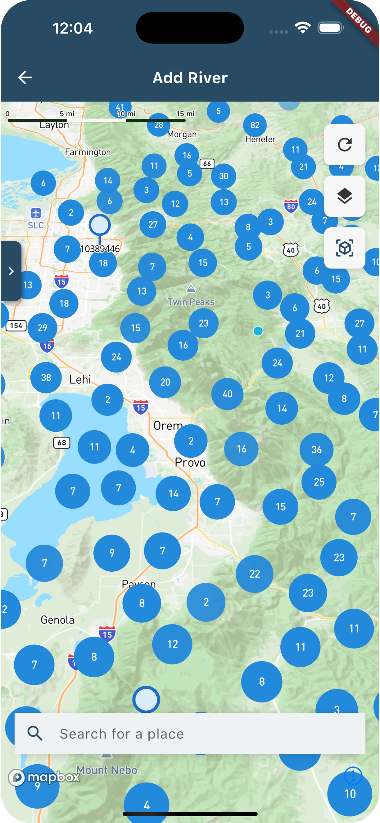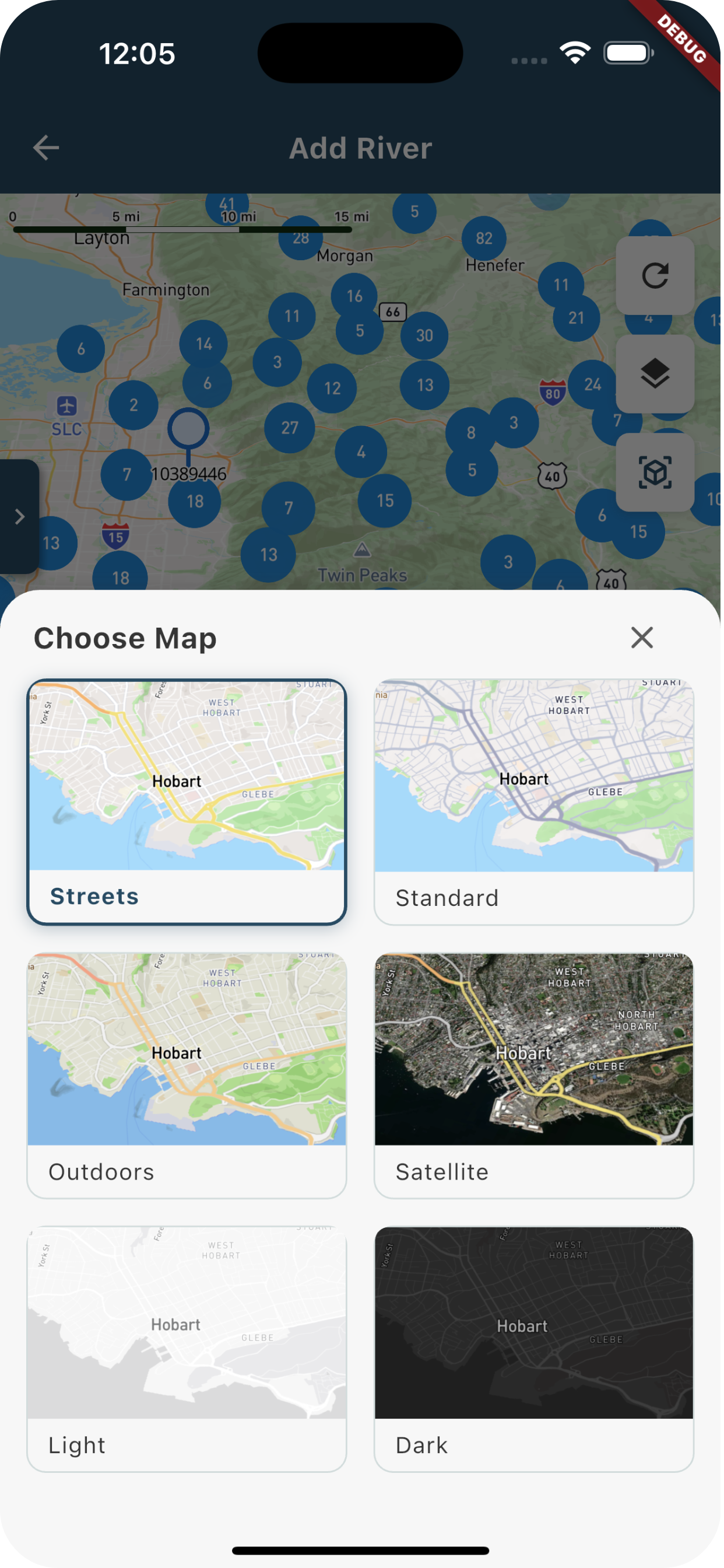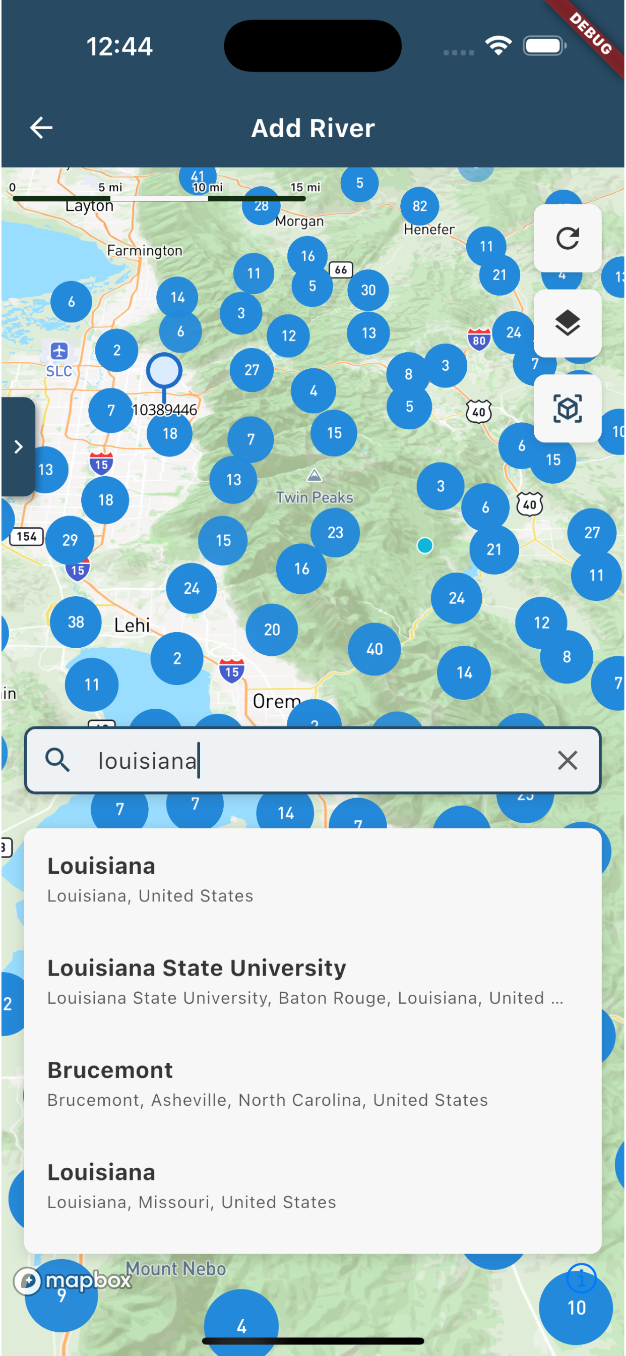 - Upon opening the "Add River" section, you'll see a map with location markers.