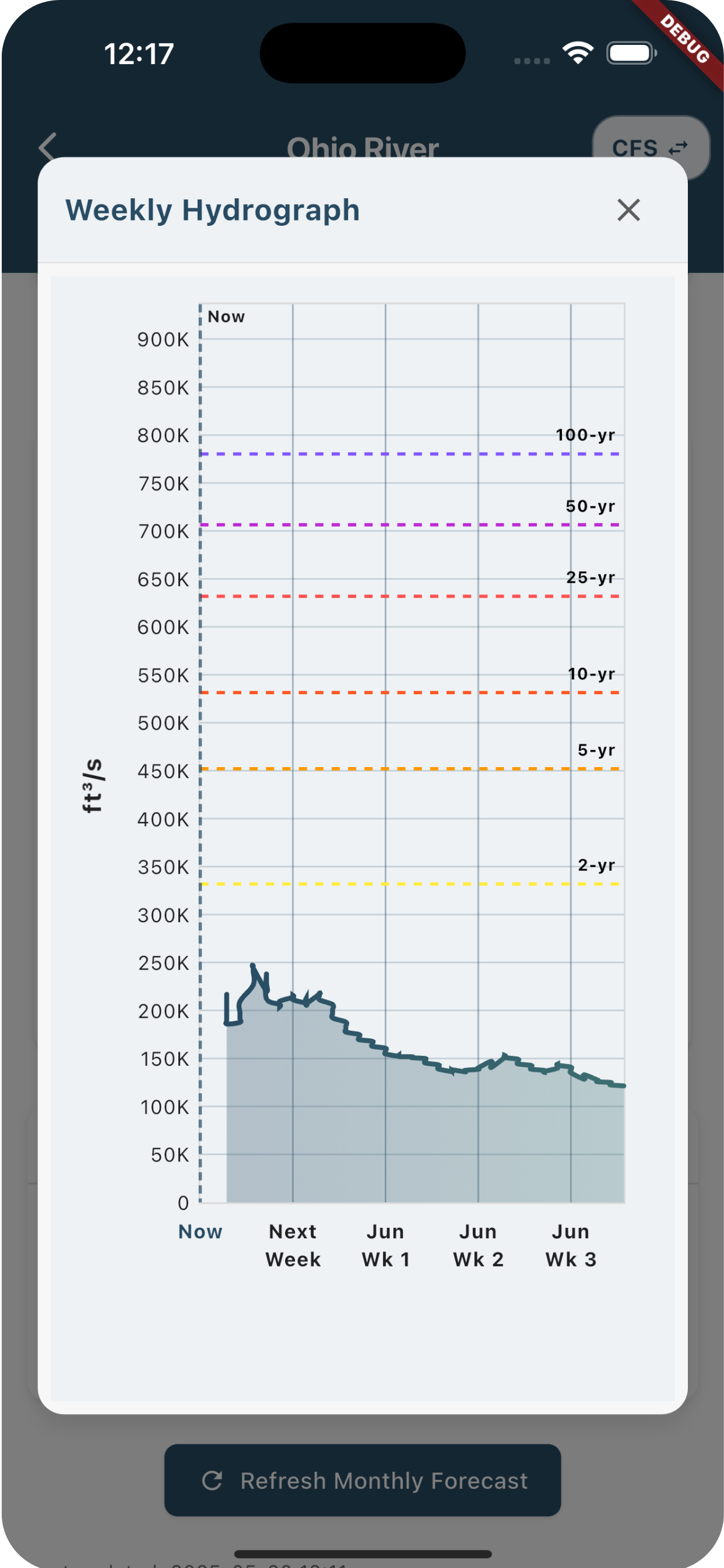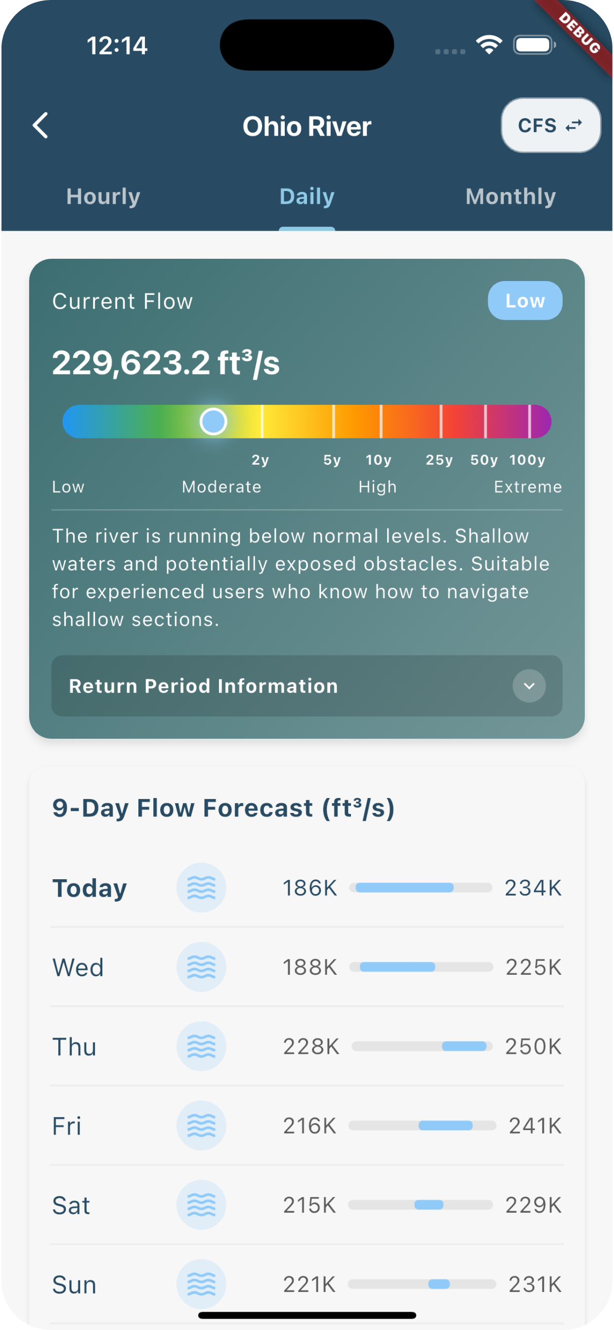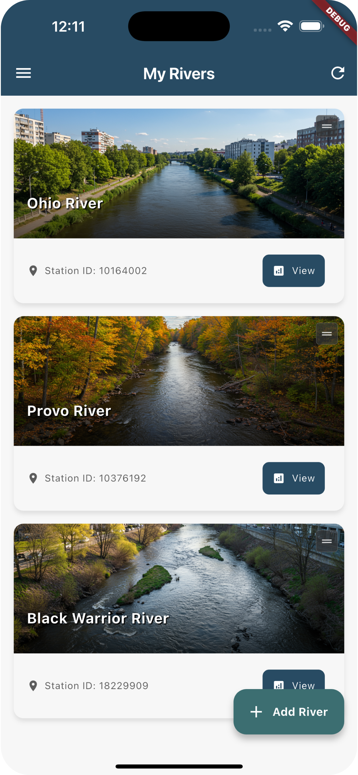 Welcome to the RIVR App, your go-to tool for real-time and forecast river flow information. Whether you're a kayaker, fisherman, or hydrologist, RIVR provides critical data to help you plan and understand river conditions. With the RIVR App, you can monitor river levels, access short-term and long-term forecasts, and manage a list of your favorite rivers for quick access.