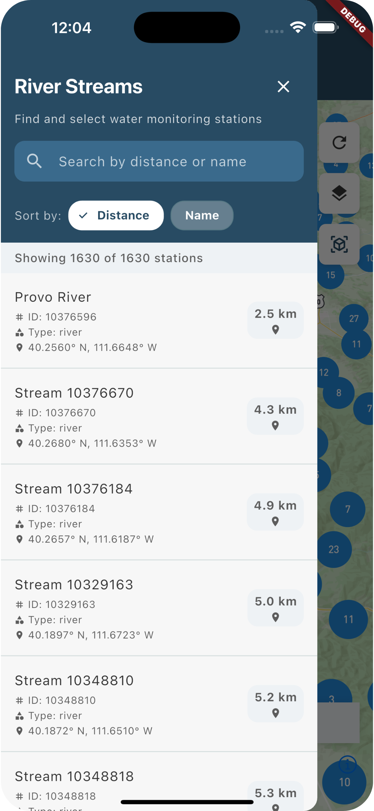 - Markers indicate river monitoring stations. Tap on a marker to see more details. You may be able to also search for a place in the search bar, such as "Louisiana".